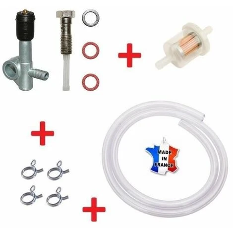 Kit complet de réparation essence : robinet + tuyau + filtre carburant + collier de serrage