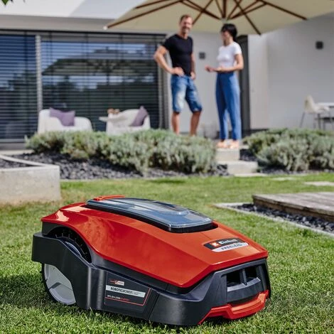- Le robot-tondeuse FREELEXO+ Einhell peut être programmé individuellement par Bluetooth au moyen d’une application.
