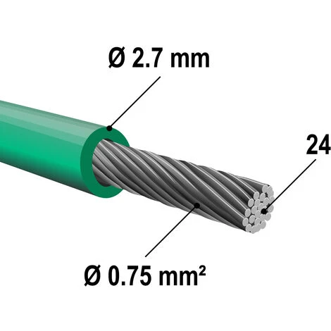 | Dimensions | Longueur 250 m Ø Extérieur 2,7 mm Ø Intérieur 0,75 mm² |